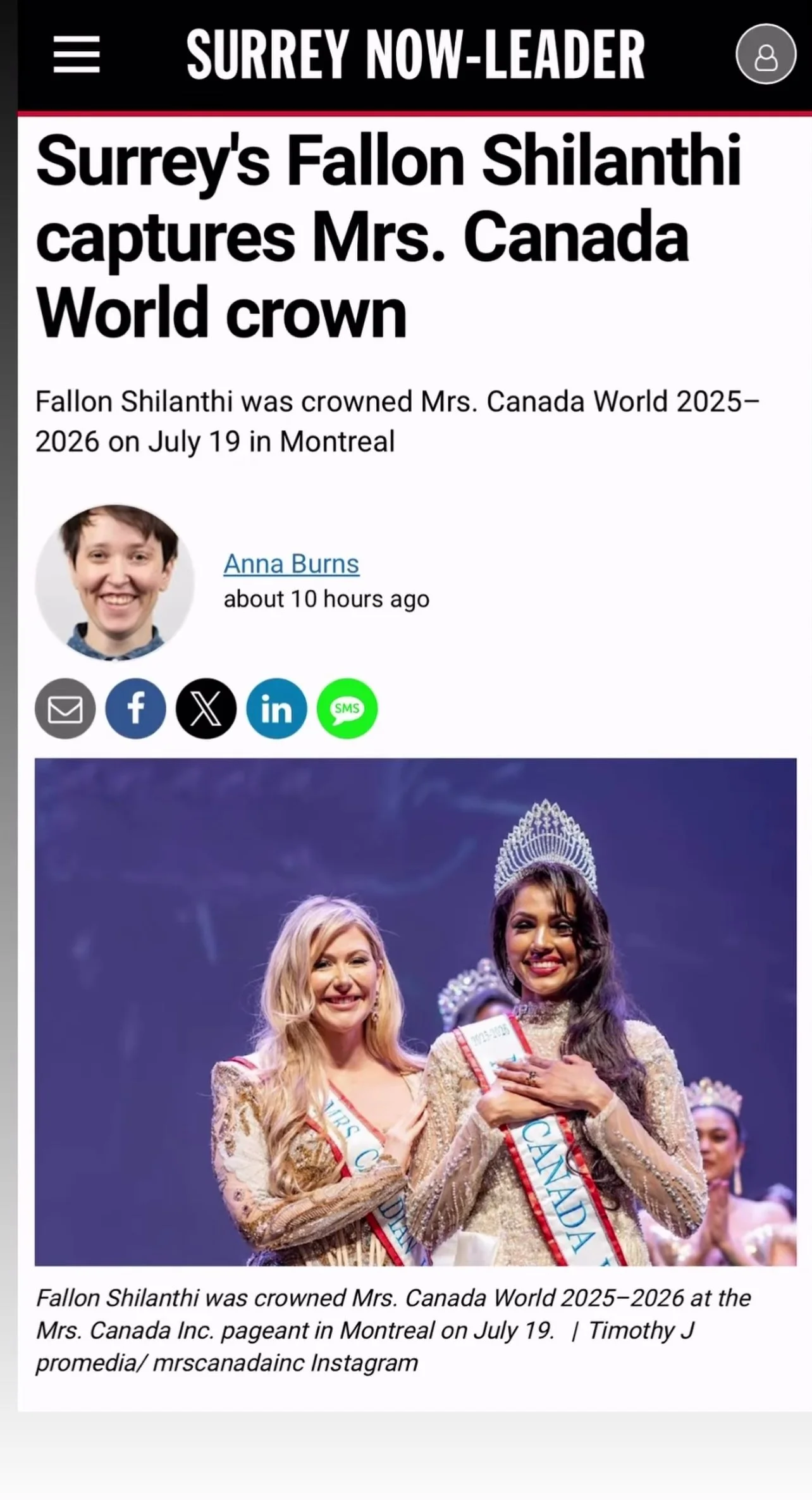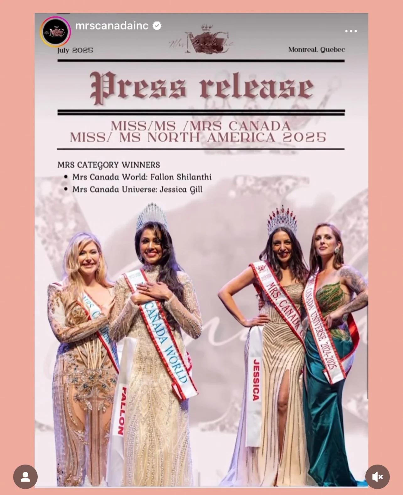 Fallon Shilanthi is the reigning Mrs. Canada World 2025–2026, carrying forward a legacy of elegance, resilience, and purpose.